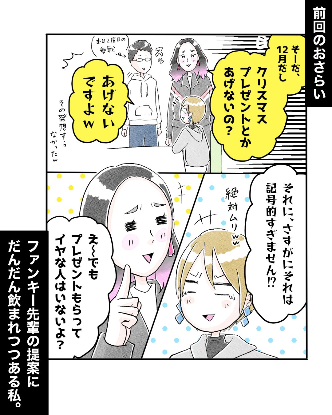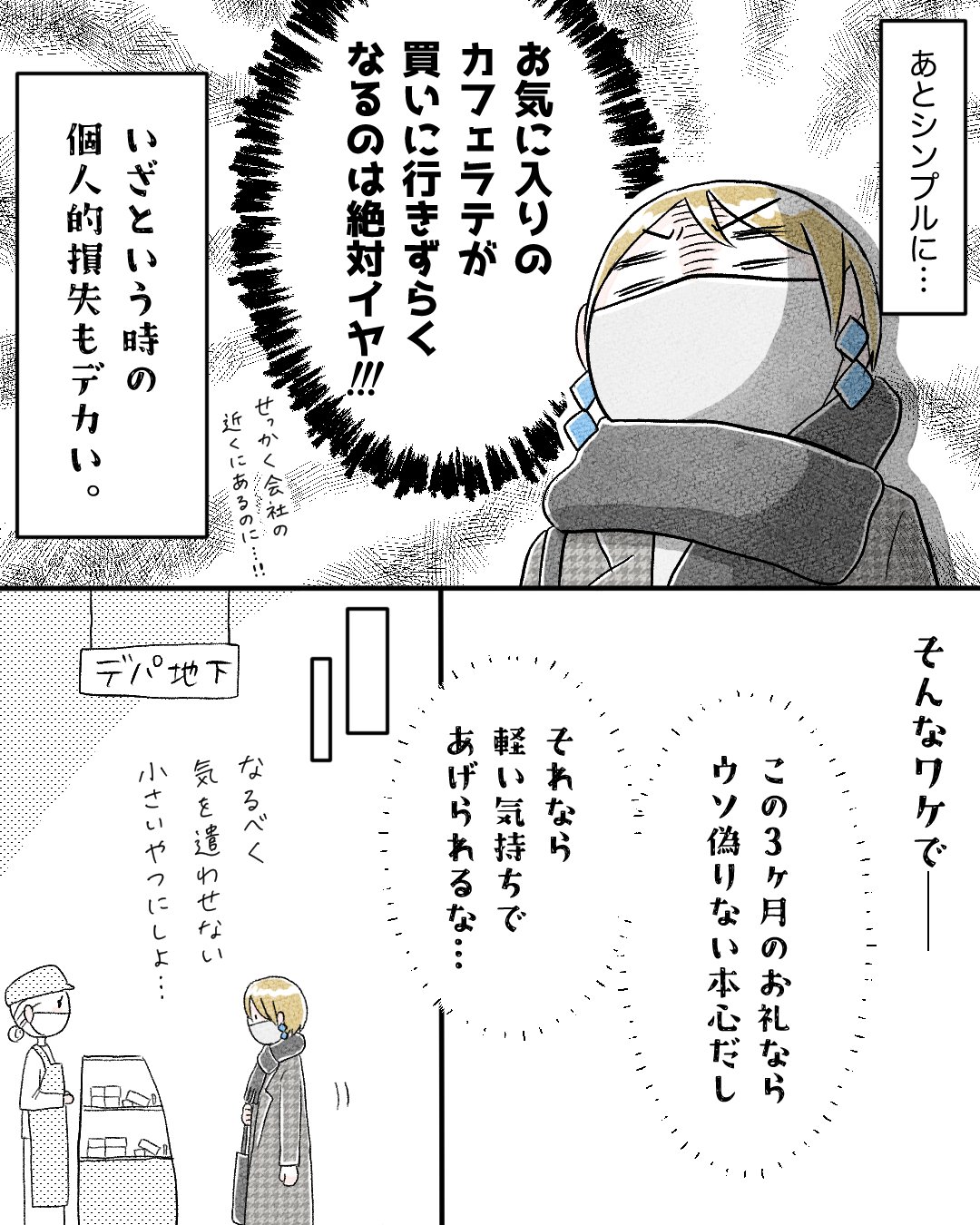 スポンサーリンク おすすめ記事スマホに人生食われるところだった❶推しカフェ店員さんがいた日々【33】推しカフェ店員さんがいた日々【32】推しカフェ店員さんがいた日々【31】推しカフェ店員さんがいた日々【30】 推しカフェ店員さんがいた日々【33】 エッセイ漫画 2025.11.21 スポンサーリンク しばらく、これまでよりやや短めが続くかもです。(これまでが長すぎたってのはあるが😅) そうでもしないと年明けまで一切更新できない気がするので…! 流石にそれは避けたいので、なるべく週一でコンスタントに更新する方を優先します!と言っても、そうもできなくなってくるかもだけど!😂 33話 広告 ひとこと 普段の自分なら絶対しない方を選んでみた😂 642