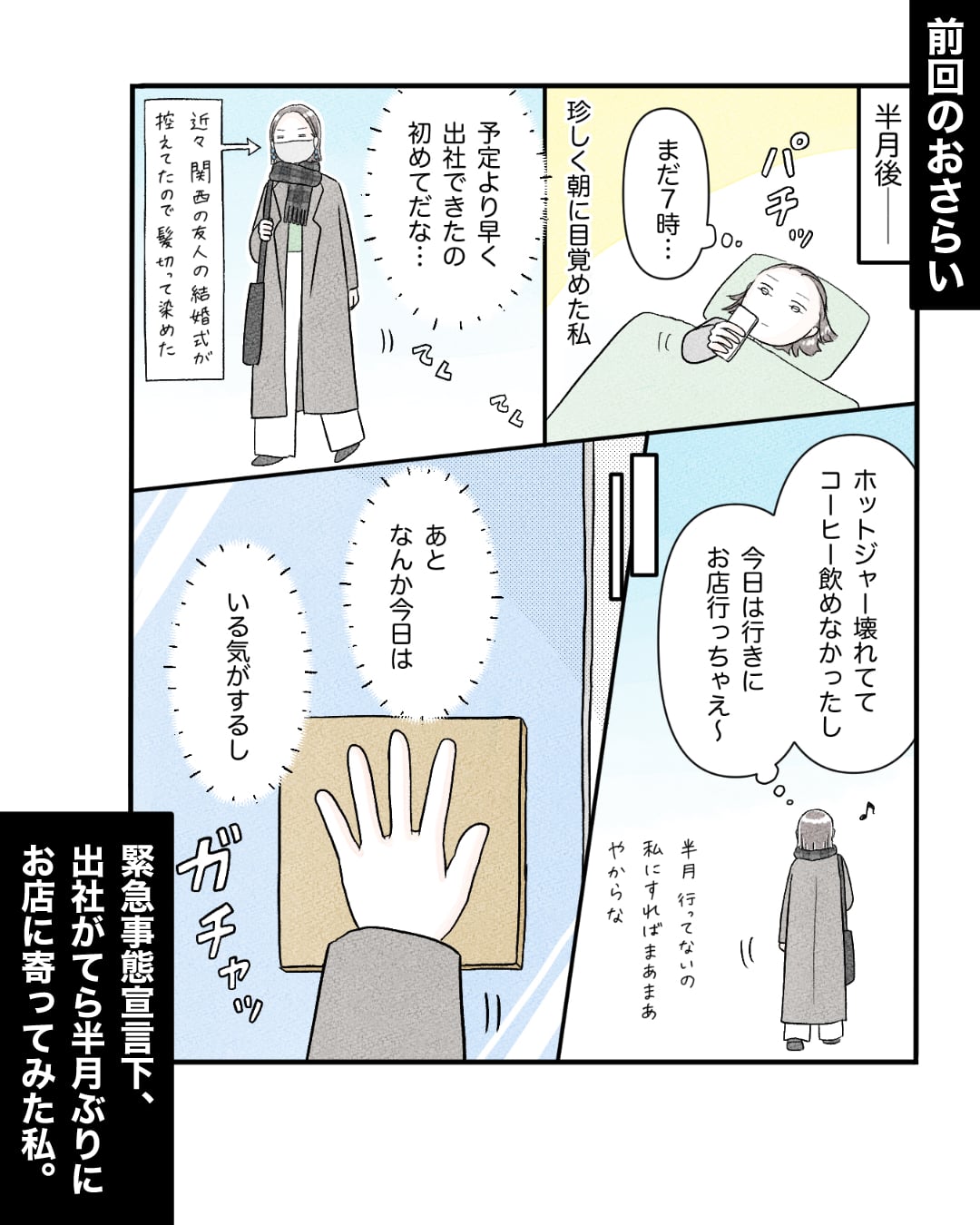 スポンサーリンク おすすめ記事スマホに人生食われるところだった❶推しカフェ店員さんがいた日々【41】推しカフェ店員さんがいた日々【40】推しカフェ店員さんがいた日々【39】推しカフェ店員さんがいた日々【番外編】 推しカフェ店員さんがいた日々【41】 エッセイ漫画 2026.03.04 スポンサーリンク このペースだと春のうちに終えられるか怪しくなってきました😂 確定申告もまだだよ、、来週ヒイヒイ言ってそう 41話 広告 広告 ひとこと ほんまにギョッとした 313